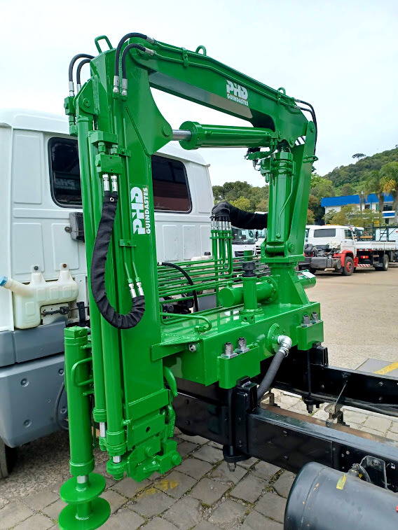 Composto de duas lanças hidráulicas e uma lança manual, indicado para caminhões com PBT mínimo de 3 ton. no eixo dianteiro. Com extensão manual das sapatas dianteiras, horímetro, manômetro, tomada de força, bomba hidráulica, óleo hidráulico e sobre quadro. Podendo ainda ser equipado com os seguintes acessórios: controle remoto, limitador de momento de carga e malhal metálico.