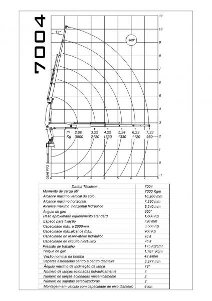 Composto de duas lanças hidráulicas e duas lanças manuais, indicado para caminhões com PBT mínimo de 4 ton. no eixo dianteiro. Com extensão manual das sapatas dianteiras, horímetro, manômetro, tomada de força, bomba hidráulica, óleo hidráulico e sobre quadro. Podendo ainda ser equipado com os seguintes acessórios: controle remoto, limitador de momento de carga, malhal metálico e extensão hidráulica das sapatas dianteiras.