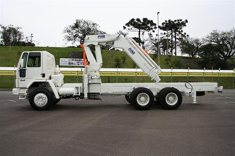 PHD40007 - Composto de quatro lanças hidráulicas e três lanças manuais, indicado para caminhões com PBT mínimo de 6 ton. no eixo dianteiro. Com extensão hidráulica das sapatas dianteiras, extensão hidráulica simples das sapatas traseiras, horímetro, manômetro, tomada de força, bomba hidráulica, óleo hidráulico e sobre chassis. Podendo ainda ser equipado com os seguintes acessórios: controle remoto, limitador de momento de carga, malhal metálico, guincho de cabo com capacidade para 1.5, 3 ou 5.8 toneladas e porta palletes.