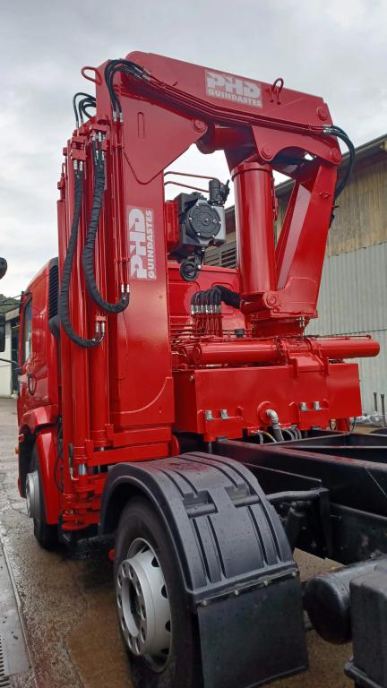 Composto de cinco lanças hidráulicas e três lanças manuais, indicado para caminhões com PBT mínimo de 6 ton. no eixo dianteiro. Braços das sapatas dianteiras telescópicos com sistema de extensão hidráulica, extensão hidráulica dupla das sapatas traseiras, sistema de rolamentos axiais na coluna de giro, horímetro, manômetro, tomada de força, bomba hidráulica, óleo hidráulico e sobre chassis. Podendo ainda ser equipado com os seguintes acessórios: controle remoto, limitador de momento de carga, malhal metálico, guincho de cabo com capacidade para 1.5, 3 ou 5.8 toneladas e porta palletes.